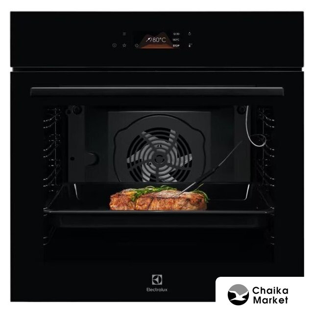 электрический с конвекцией, приготовление на пару, объем 76 л, без ручки, 12 режимов, автопрограммы, очистка пиролитическая + паровая, 4 стекла в дверце, направляющие проволочные + телескопические (2 уровня), термощуп