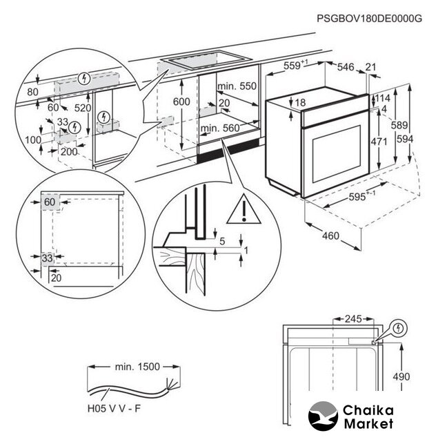 электрический, объем 70 л, 8 режимов, очистка пиролитическая + паровая, 4 стекла в дверце, направляющие проволочные
