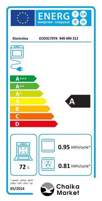 электрический с конвекцией, объем 72 л, 6 режимов, очистка паровая, направляющие проволочные + телескопические (1 уровень)