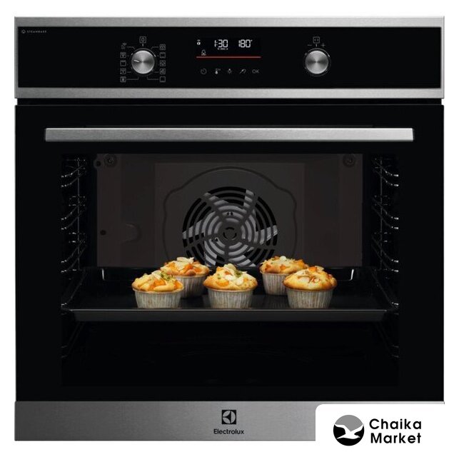 электрический с конвекцией, объем 76 л, 13 режимов, автопрограммы, очистка каталитическая + паровая, 2 стекла в дверце, направляющие проволочные + телескопические (1 уровень)
