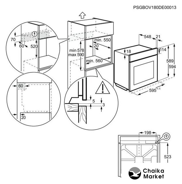 Режимы работы | нижний нагрев, двухсторонний нагрев, большой гриль, вентиляционный нагрев, гриль + конвекция, нижний + вентиляционный нагрев, размораживание, поддержание температуры (подогрев), предварительный разогрев духовки |