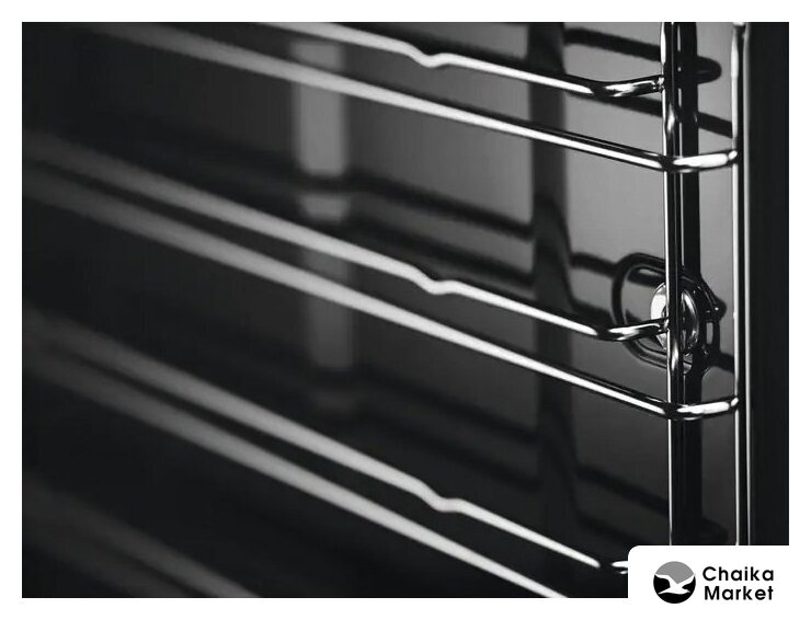 электрический с конвекцией, объем 57 л, утапливаемые переключатели, 8 режимов, очистка ручная, 3 стекла в дверце, направляющие проволочные