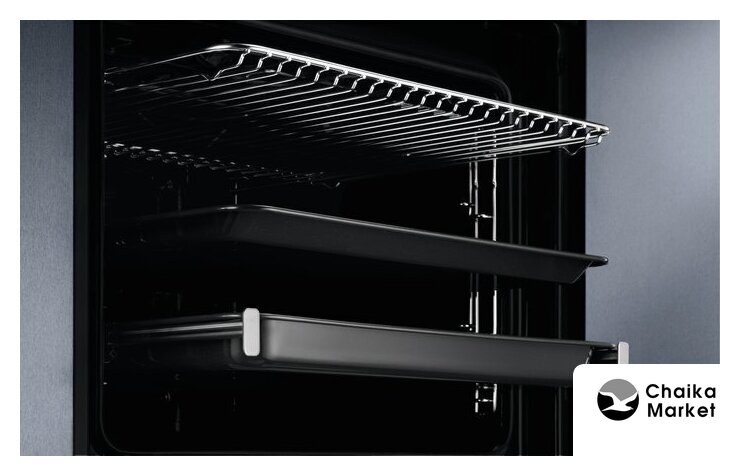 электрический с конвекцией, объем 76 л, 9 режимов, очистка паровая, 3 стекла в дверце, направляющие проволочные + телескопические (2 уровня)
