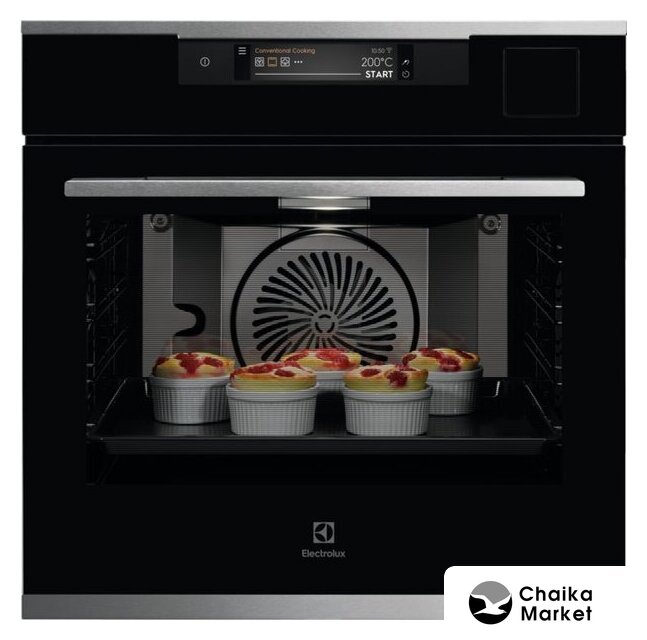 электрический с конвекцией, объем 71 л, 13 режимов, очистка пиролитическая + паровая, направляющие проволочные, термощуп