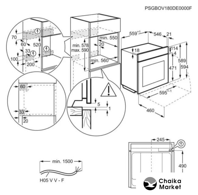 электрический с конвекцией, микроволны, объем 68 л, 20 режимов, очистка паровая, 4 стекла в дверце, направляющие проволочные + телескопические (1 уровень)