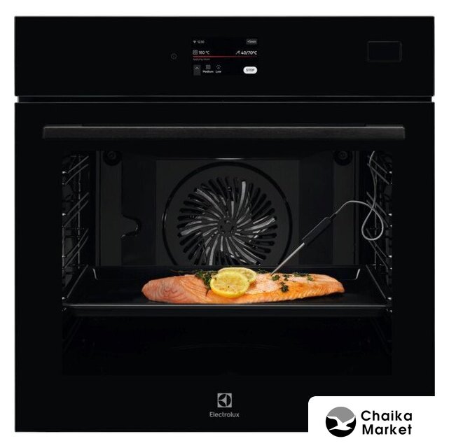 электрический с конвекцией, приготовление на пару, объем 78 л, 25 режимов, очистка пиролитическая + паровая, направляющие проволочные + телескопические (1 уровень), термощуп