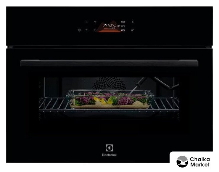 электрический с конвекцией, приготовление на пару, объем 76 л, 12 режимов, автопрограммы, очистка каталитическая + паровая, 2 стекла в дверце, направляющие проволочные + телескопические (1 уровень)