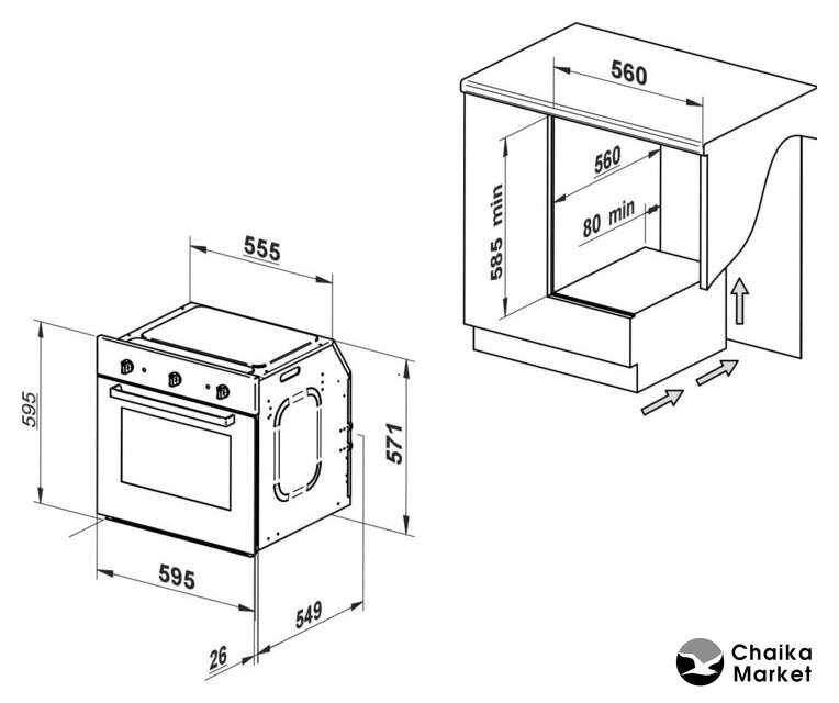 электрический с конвекцией, объем 71 л, 7 режимов, очистка ручная, направляющие проволочные + телескопические (1 уровень)