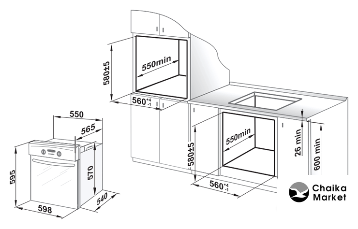 электрический с конвекцией, объем 52 л, 5 режимов, очистка ручная, проволочные направляющие, энергопотребление A