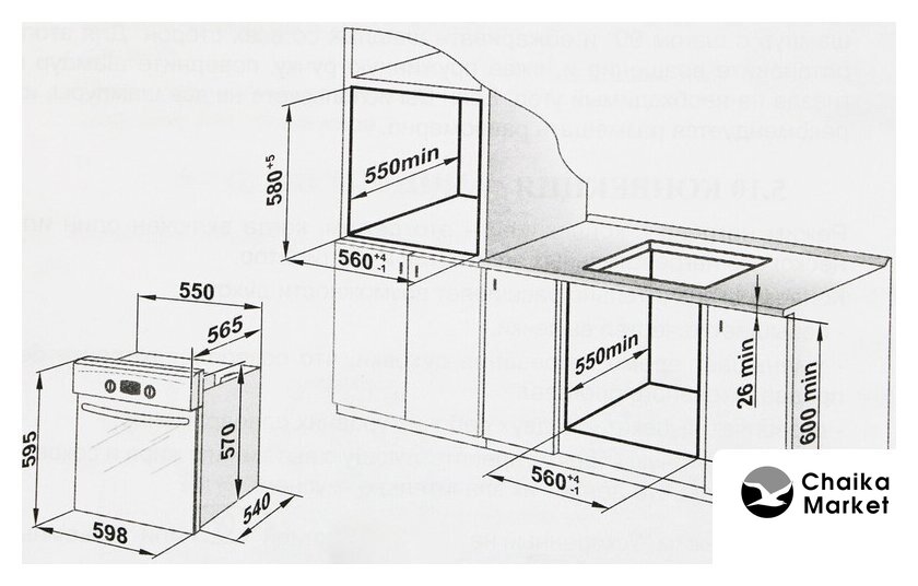 электрический с конвекцией, объем 55 л, 7 режимов, очистка паровая, направляющие проволочные