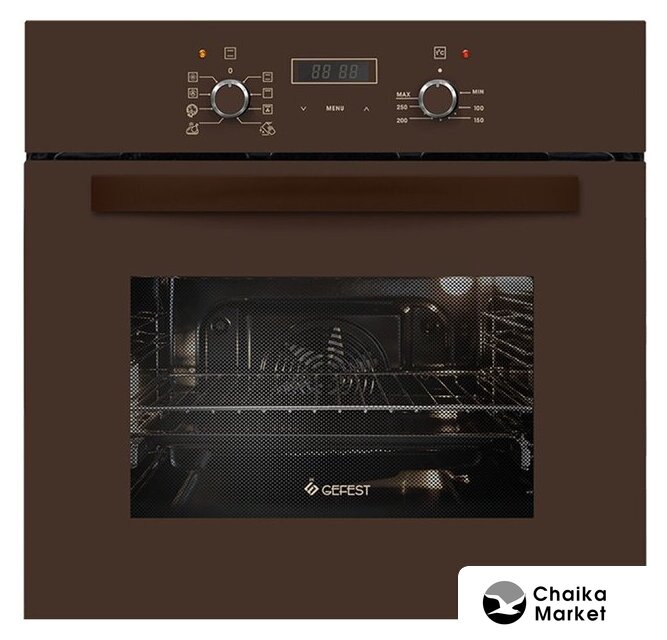 электрический с конвекцией, объем 58 л, 9 режимов, очистка ручная, проволочные направляющие, энергопотребление A