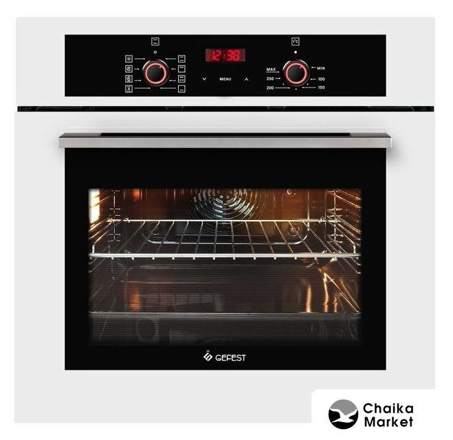 электрический с конвекцией, объем 58 л, 6 режимов, очистка ручная, 3 стекла в дверце, направляющие проволочные