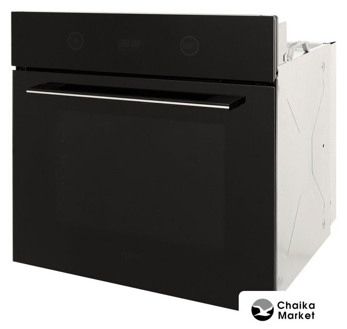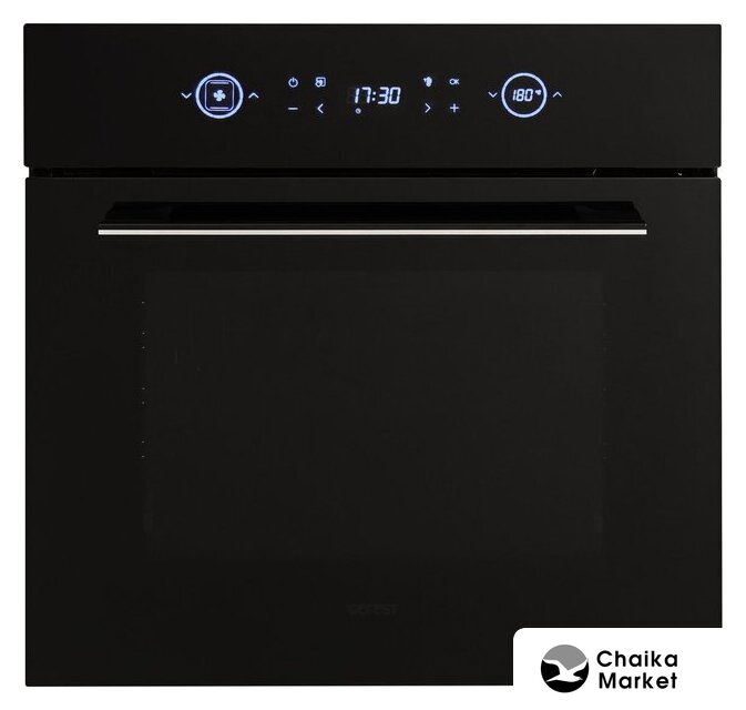 электрический статический, объем 77 л, утапливаемые переключатели, 12 режимов, очистка паровая, 2 стекла в дверце, направляющие проволочные