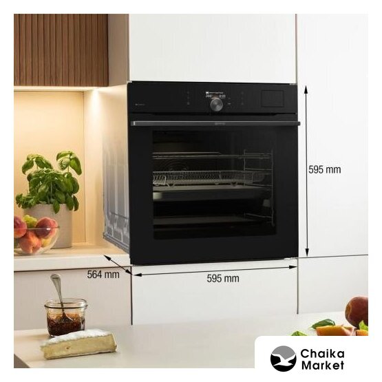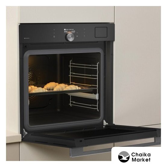 электрический с конвекцией, объем 78 л, 26 режимов, автопрограммы, очистка пиролитическая + паровая, направляющие проволочные + телескопические (2 уровня), термощуп