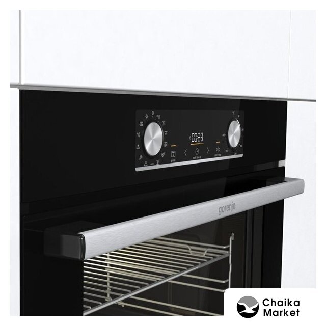 электрический с конвекцией, объем 47 л, утапливаемые переключатели, 9 режимов, очистка паровая, 3 стекла в дверце, направляющие проволочные + телескопические (1 уровень)