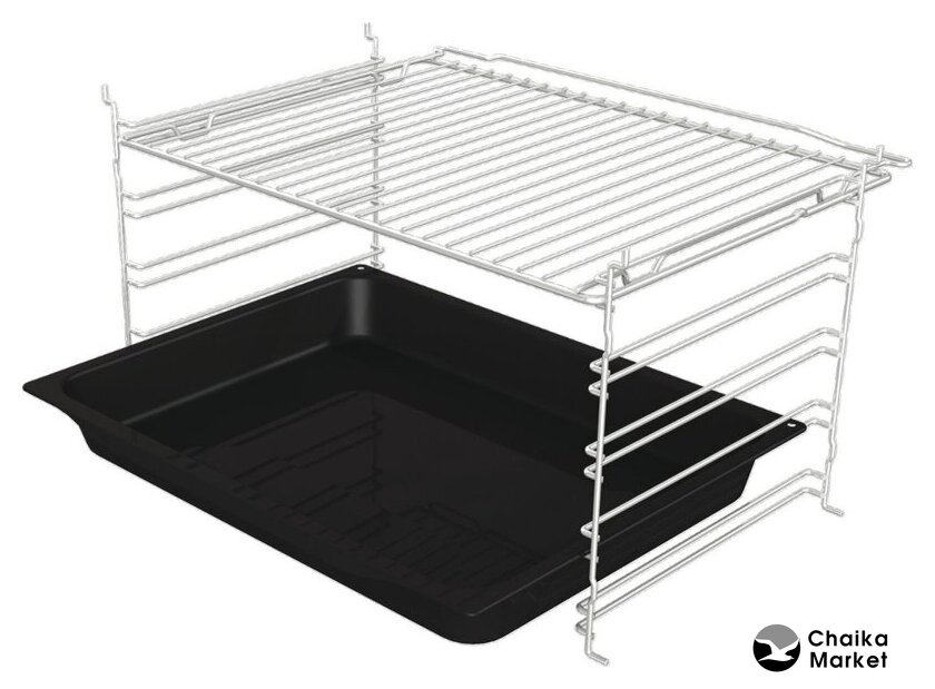 электрический с конвекцией, объем 76 л, 10 режимов, очистка ручная, 3 стекла в дверце, направляющие проволочные + телескопические (2 уровня)