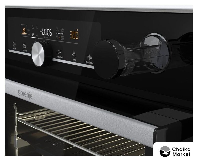 электрический с конвекцией, объем 76 л, 13 режимов, автопрограммы, очистка каталитическая + паровая, 2 стекла в дверце, направляющие проволочные + телескопические (1 уровень)