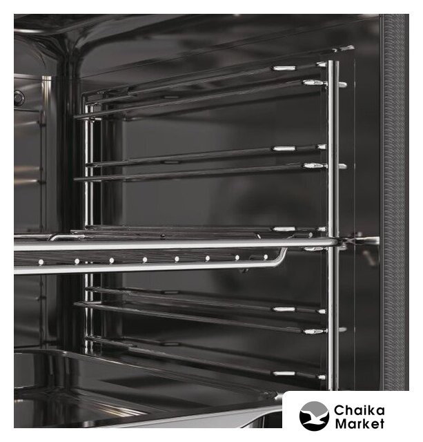 электрический с конвекцией, объем 71 л, 9 режимов, очистка ручная + паровая, 2 стекла в дверце, направляющие проволочные