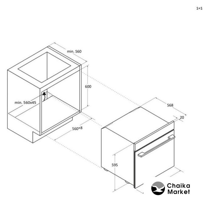 электрический с конвекцией, объем 70 л, 8 режимов, очистка паровая, 3 стекла в дверце, направляющие проволочные