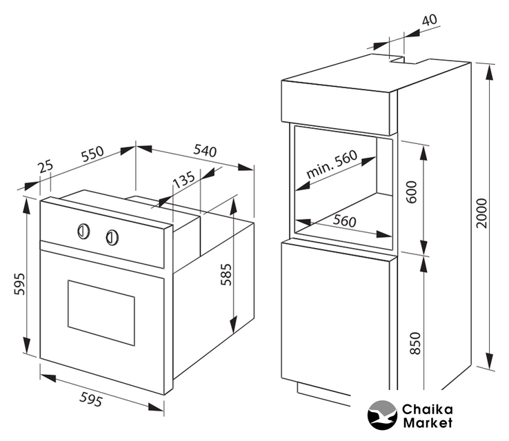 электрический с конвекцией, объем 62 л, 8 режимов, очистка ручная/паровая, энергопотребление A