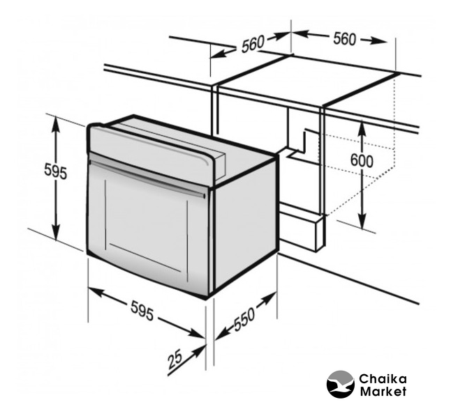 электрический с конвекцией, объем 58 л, 6 режимов, очистка ручная, проволочные направляющие, энергопотребление A