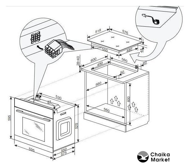 электрический статический, объем 60 л, утапливаемые переключатели, 3 режима, очистка паровая, 3 стекла в дверце