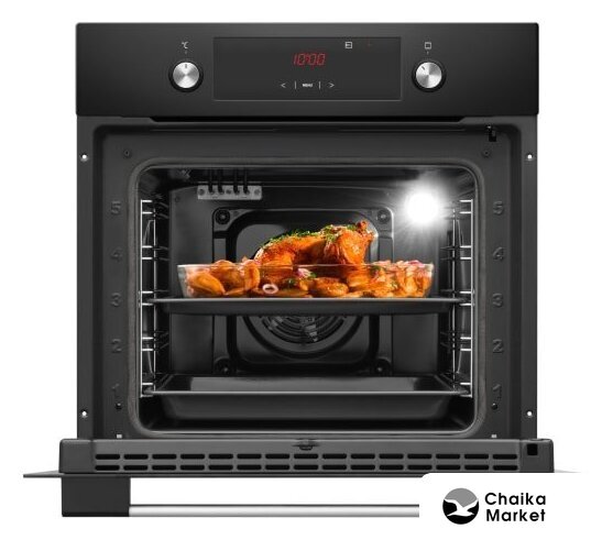 электрический с конвекцией, объем 78 л, утапливаемые переключатели, 6 режимов, очистка паровая, 3 стекла в дверце, направляющие проволочные