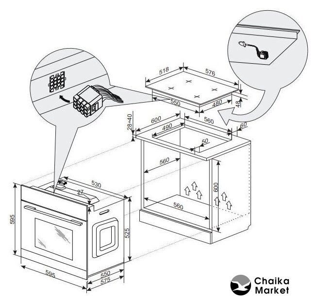 электрический с конвекцией, объем 55 л, 9 режимов, очистка ручная, направляющие проволочные + телескопические