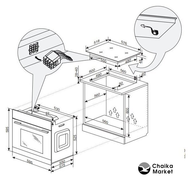 электрический с конвекцией, объем 55 л, 7 режимов, очистка паровая, 2 стекла в дверце, направляющие проволочные + телескопические (1 уровень)