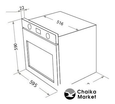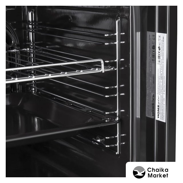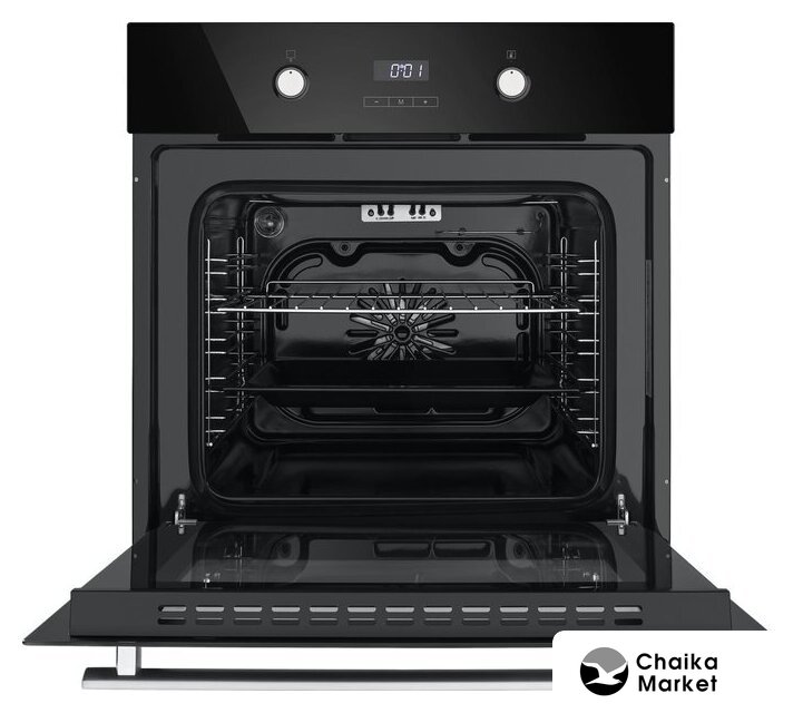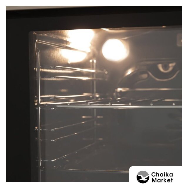 электрический с конвекцией, объем 60 л, утапливаемые переключатели, 10 режимов, очистка ручная, 3 стекла в дверце, направляющие проволочные