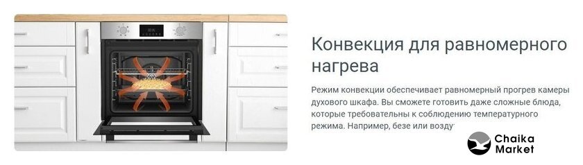 электрический с конвекцией, объем 65 л, 8 режимов, очистка ручная, энергопотребление A