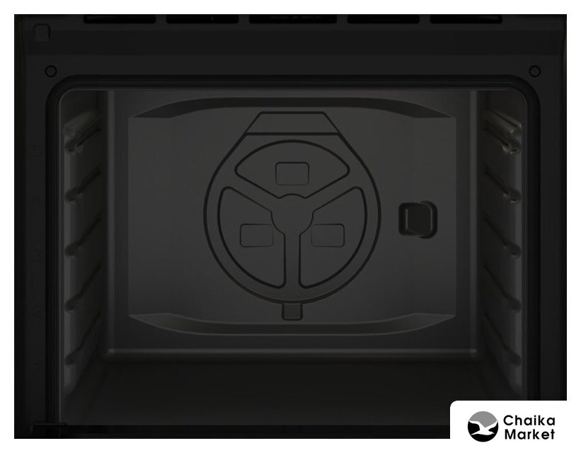 электрический с конвекцией, объем 55 л, 7 режимов, очистка паровая, 2 стекла в дверце, направляющие проволочные