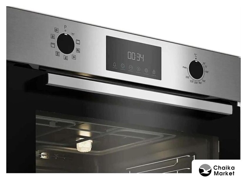электрический статический, объем 60 л, утапливаемые переключатели, 3 режима, очистка паровая, 3 стекла в дверце