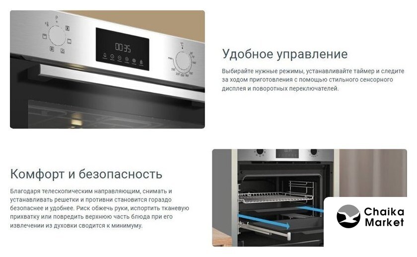 электрический статический, объем 60 л, утапливаемые переключатели, 3 режима, очистка паровая, направляющие проволочные