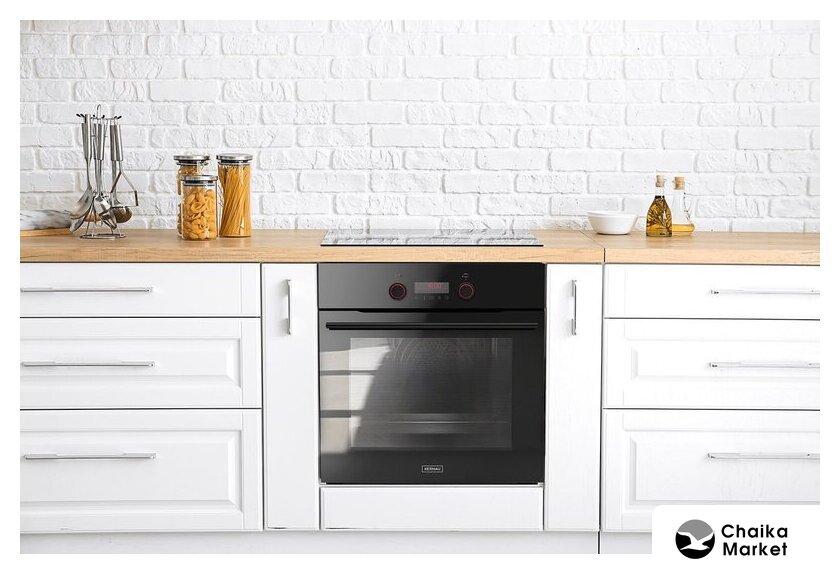 электрический с конвекцией, объем 66 л, утапливаемые переключатели, 7 режимов, автопрограммы, очистка каталитическая + паровая, направляющие рельефные