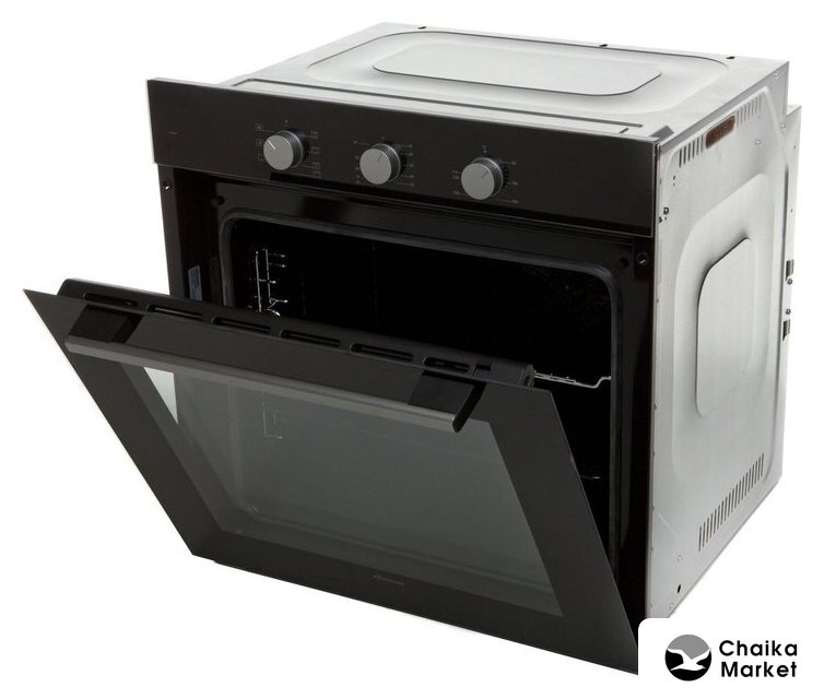 электрический с конвекцией, объем 51 л, 6 режимов, очистка ручная, 2 стекла в дверце, направляющие проволочные