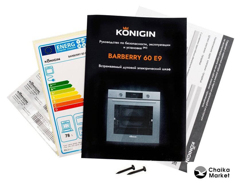 электрический с конвекцией, объем 60 л, утапливаемые переключатели, 6 режимов, очистка паровая, направляющие проволочные