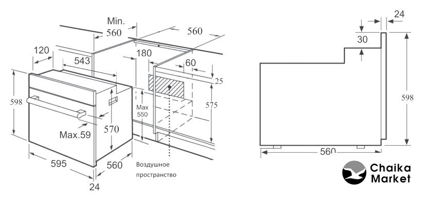 газовый статический, объем 67 л, 3 режима, очистка ручная, направляющие проволочные + телескопические (1 уровень)