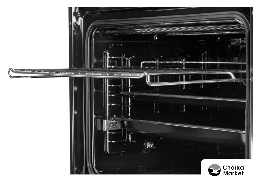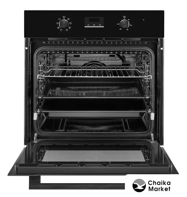 электрический с конвекцией, объем 66 л, утапливаемые переключатели, 8 режимов, очистка ручная, 3 стекла в дверце, направляющие проволочные