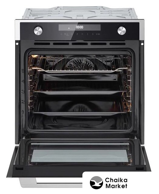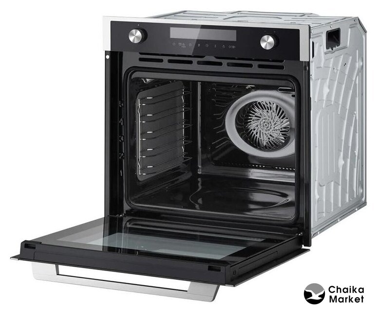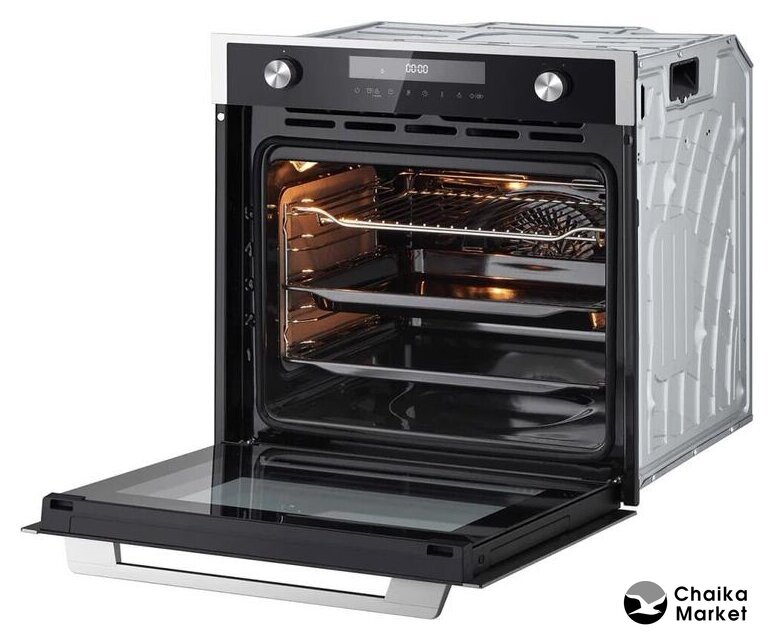 электрический с конвекцией, объем 76 л, 20 режимов, автопрограммы, очистка каталитическая, 2 стекла в дверце, направляющие проволочные