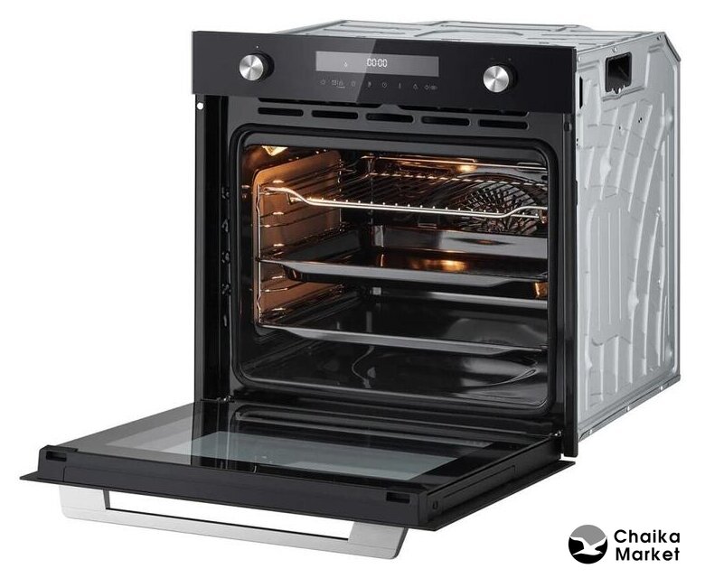 электрический с конвекцией, приготовление на пару, объем 72 л, утапливаемые переключатели, 10 режимов, очистка каталитическая, 2 стекла в дверце, направляющие проволочные + телескопические (1 уровень)