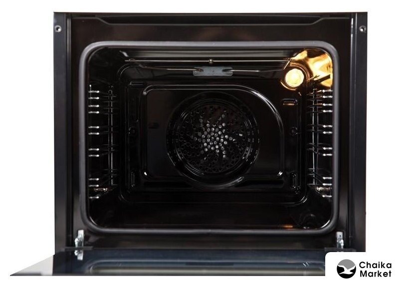 электрический с конвекцией, объем 60 л, утапливаемые переключатели, 6 режимов, очистка паровая, 3 стекла в дверце, направляющие проволочные