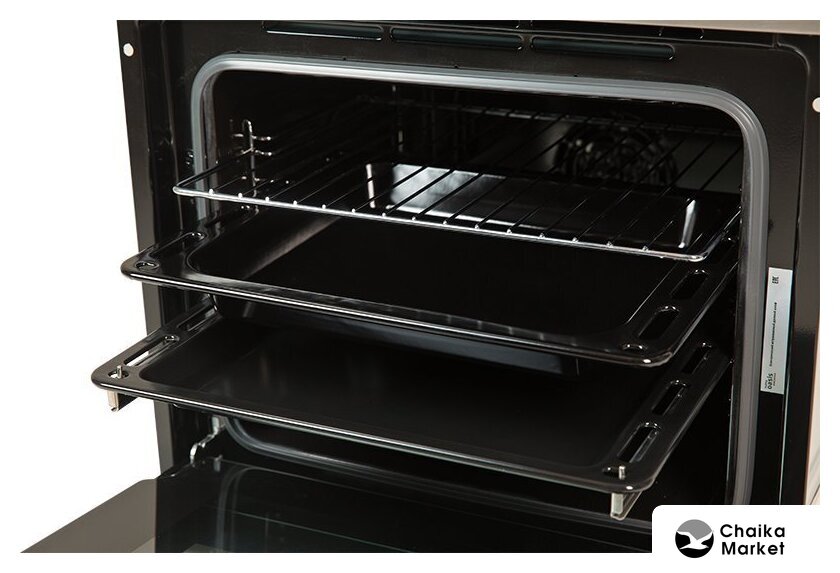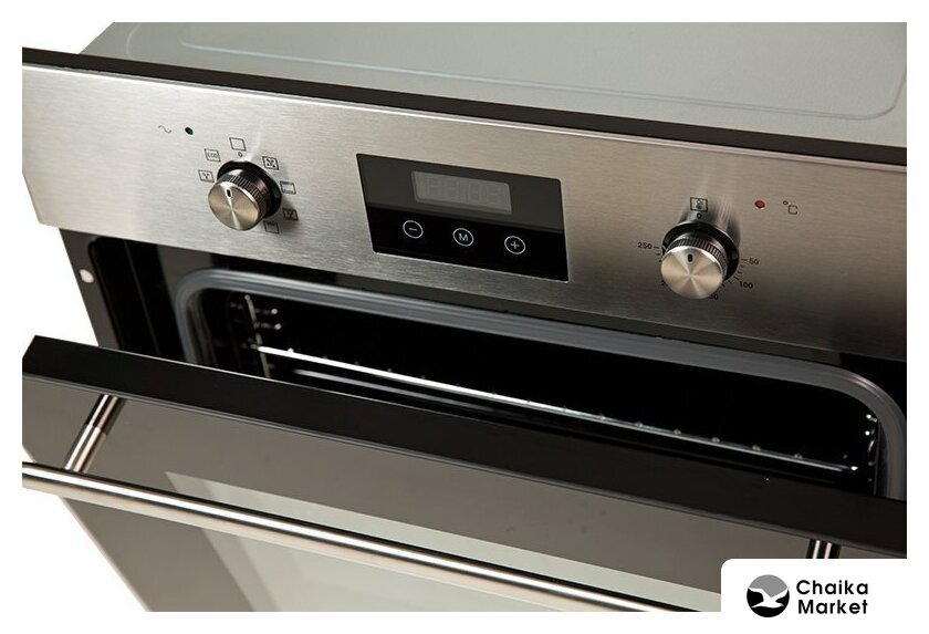 электрический с конвекцией, объем 60 л, утапливаемые переключатели, 6 режимов, очистка паровая, направляющие проволочные
