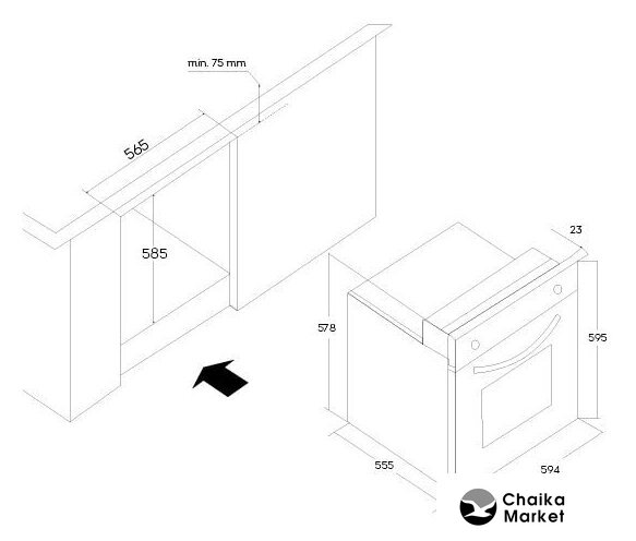 электрический с конвекцией, объем 70 л, 7 режимов, очистка ручная, проволочные направляющие, энергопотребление A
