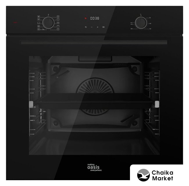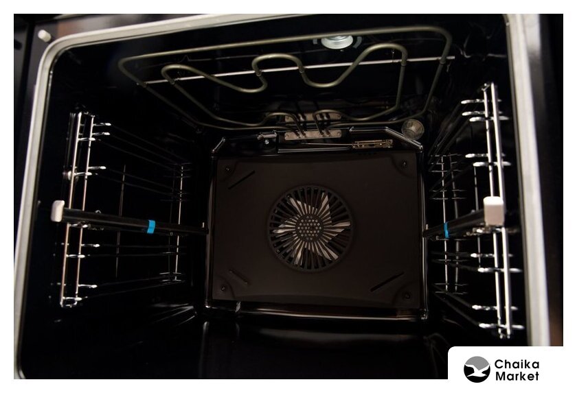 электрический с конвекцией, объем 58 л, 10 режимов, очистка ручная, 2 стекла в дверце, направляющие проволочные + телескопические (2 уровня)