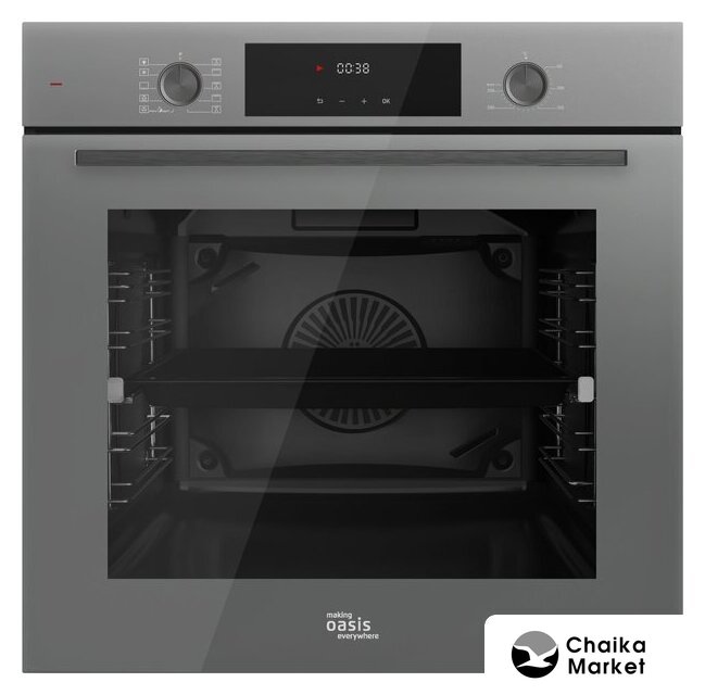 электрический с конвекцией, объем 58 л, 10 режимов, очистка ручная, 2 стекла в дверце, направляющие проволочные + телескопические (2 уровня)