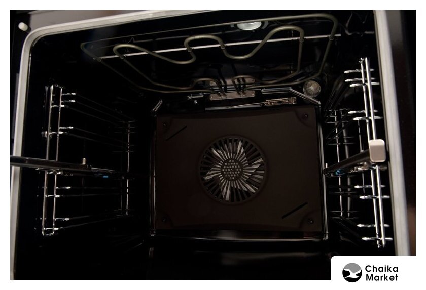 электрический с конвекцией, объем 76 л, 9 режимов, очистка ручная, проволочные направляющие, телескопические направляющие, энергопотребление A