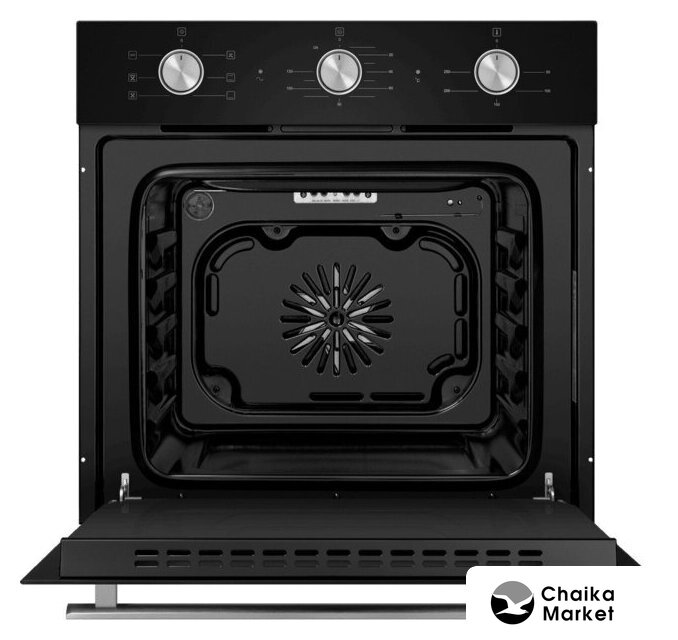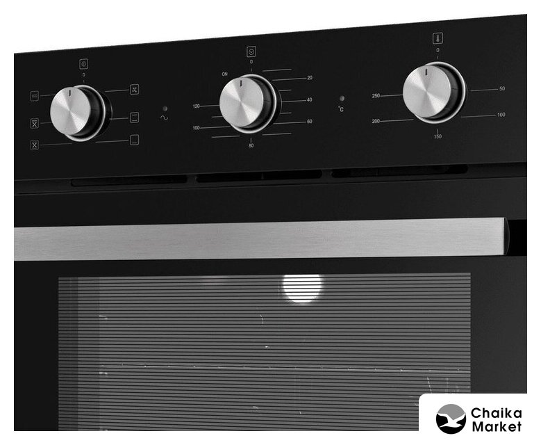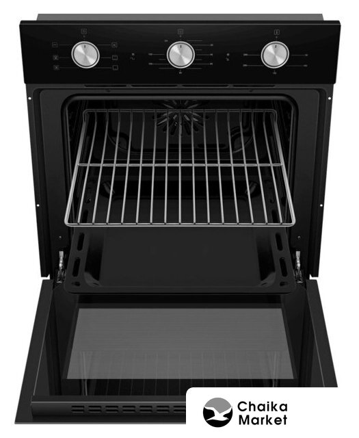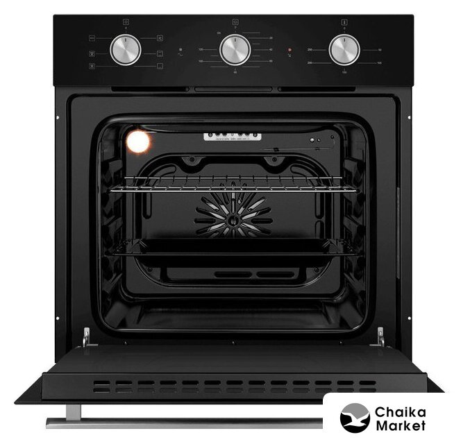 электрический с конвекцией, объем 64 л, утапливаемые переключатели, 4 режима, очистка ручная, 2 стекла в дверце, направляющие проволочные