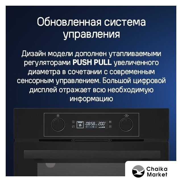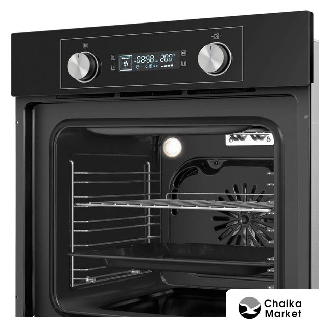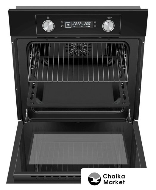 электрический с конвекцией, объем 58 л, 6 режимов, очистка ручная, проволочные направляющие, энергопотребление A