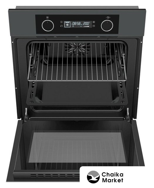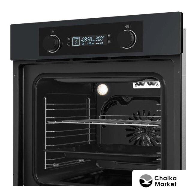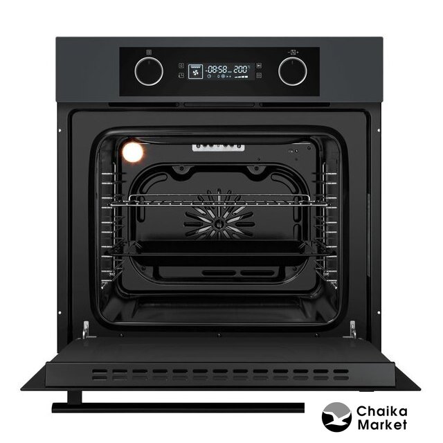 электрический с конвекцией, объем 68 л, утапливаемые переключатели, 8 режимов, очистка ручная, 3 стекла в дверце, направляющие проволочные + телескопические (1 уровень)